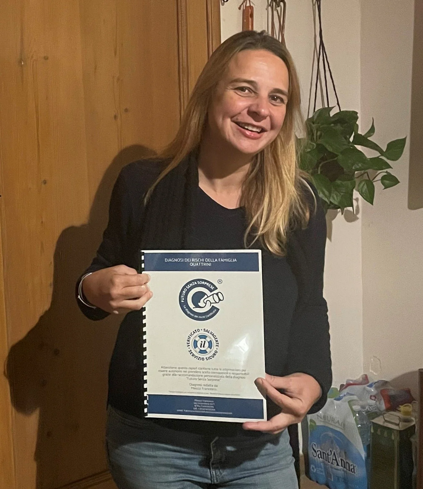Con la diagnosi dei rischi ho ricevuto la fotografia chiara della mia situazione personale. Ho rafforzato la consapevolezza di quanto sia utile e prudente aver sottoscritto la copertura assicurativa, avvertendo la piacevole sensazione che il denaro investito sia stato ben speso!